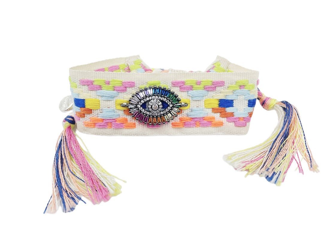 Rainbow on Ivory Woven Bracelet with Evil Eye.