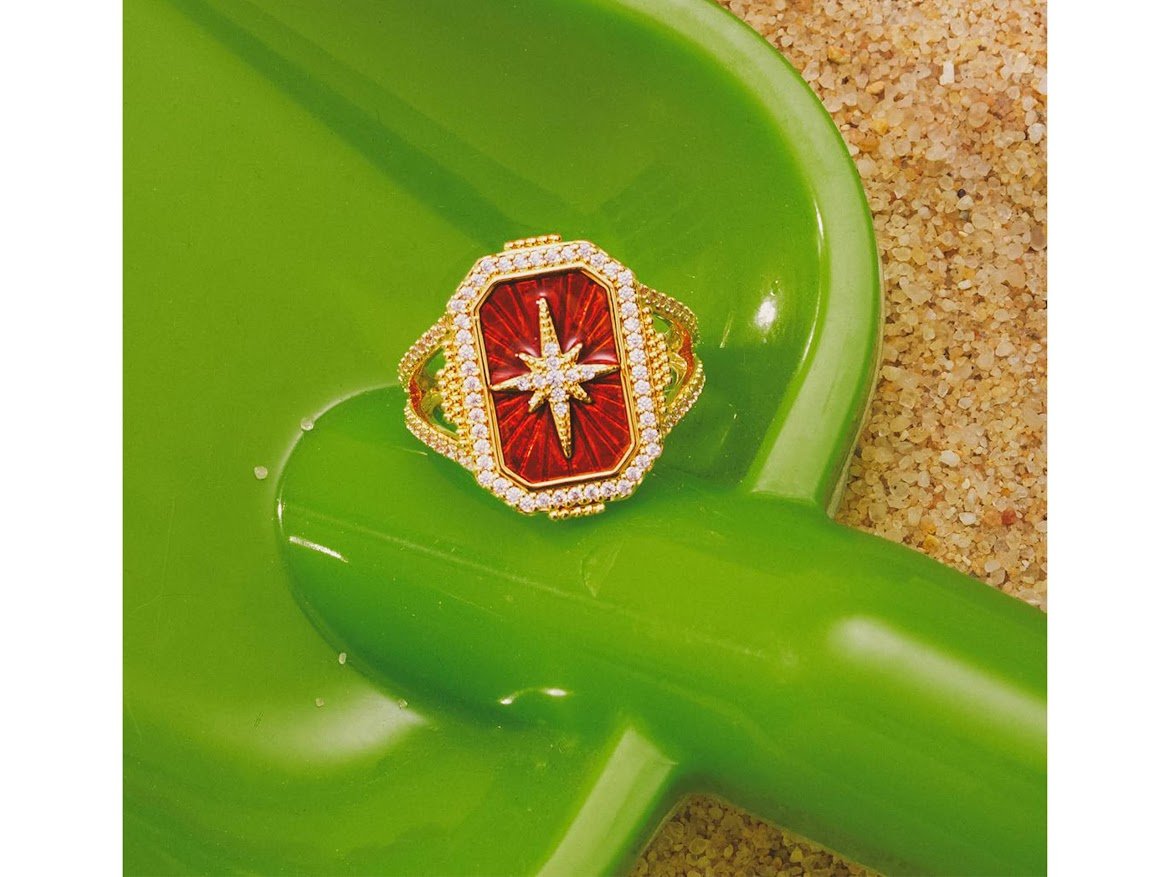 Orange Enamel and Cubic Zirconia Adjustable Ring.