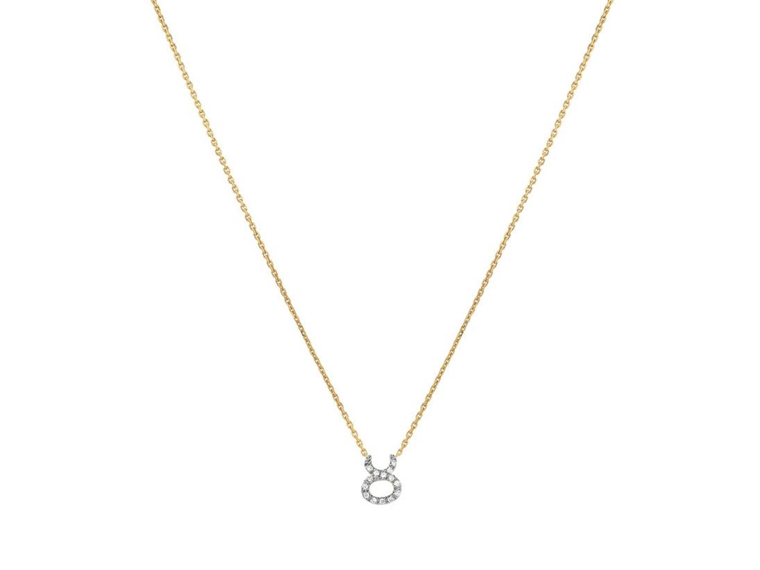 From Zoe Lev, a 14k yellow gold and diamond cancer pendant necklace with .1 ct of quality VS diamonds. Approximately .5 inch wide.