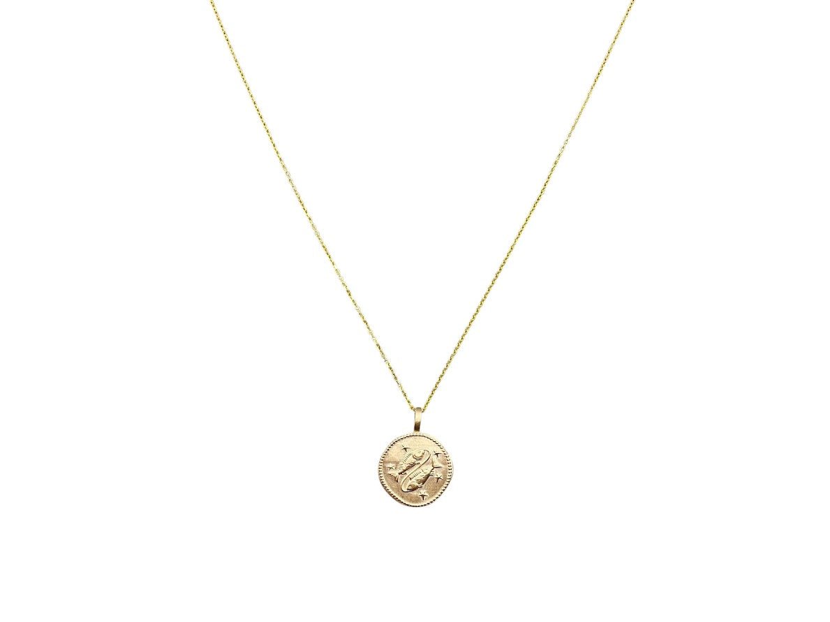 A gold-plated zodiac charm that's 1.6cm in diameter hangs from a gold vermeil faceted cable chain that’s adjustable from 16 to 18 inches. Made in France.