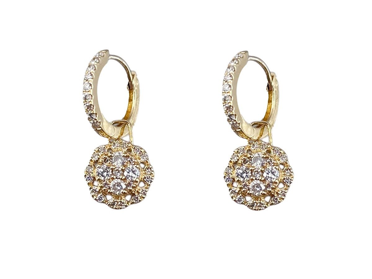 14k and Diamond Flower Drop Charm Huggie Hoops