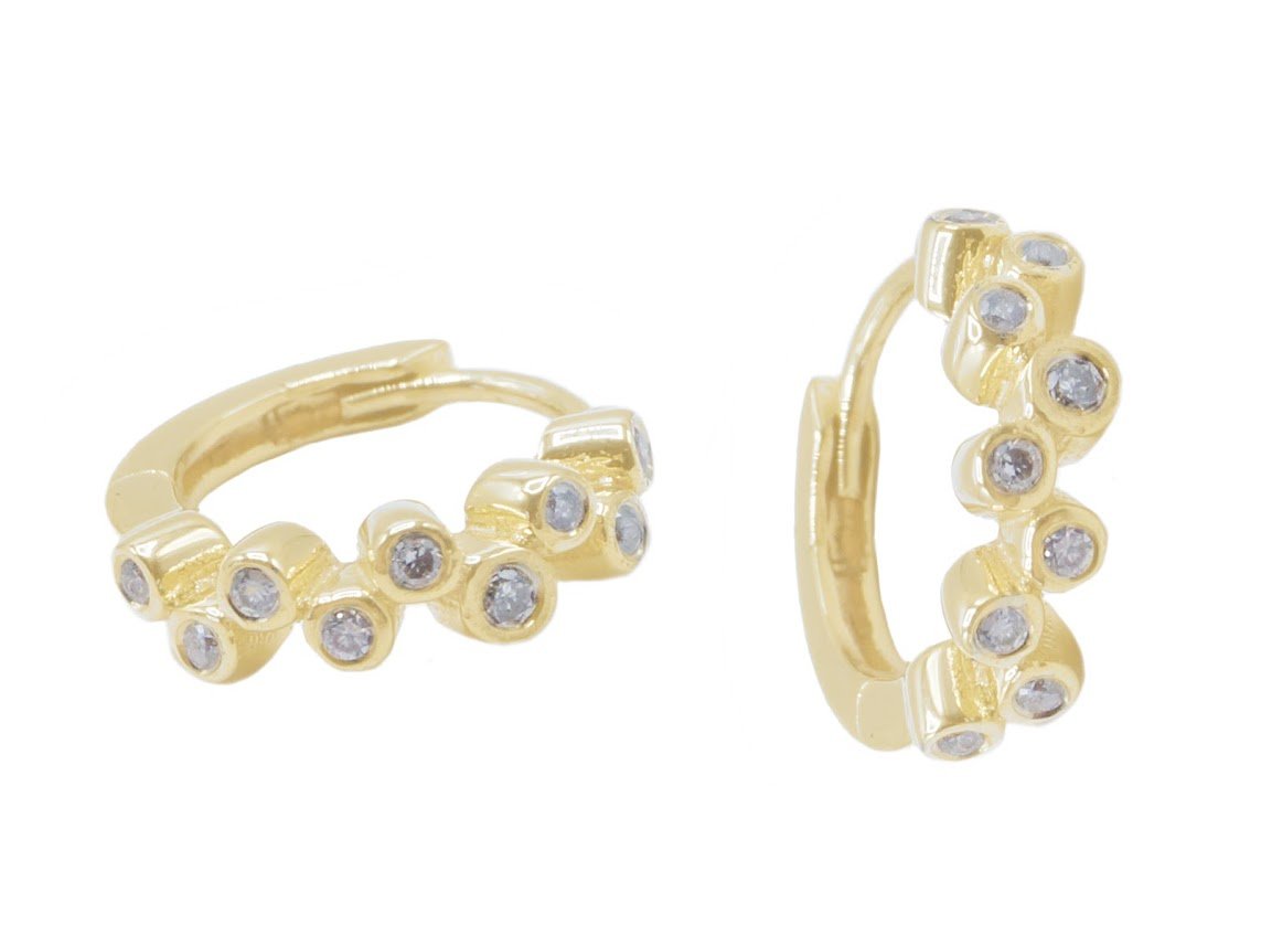 These 14k yellow gold huggie hoops include .13ct of diamonds.