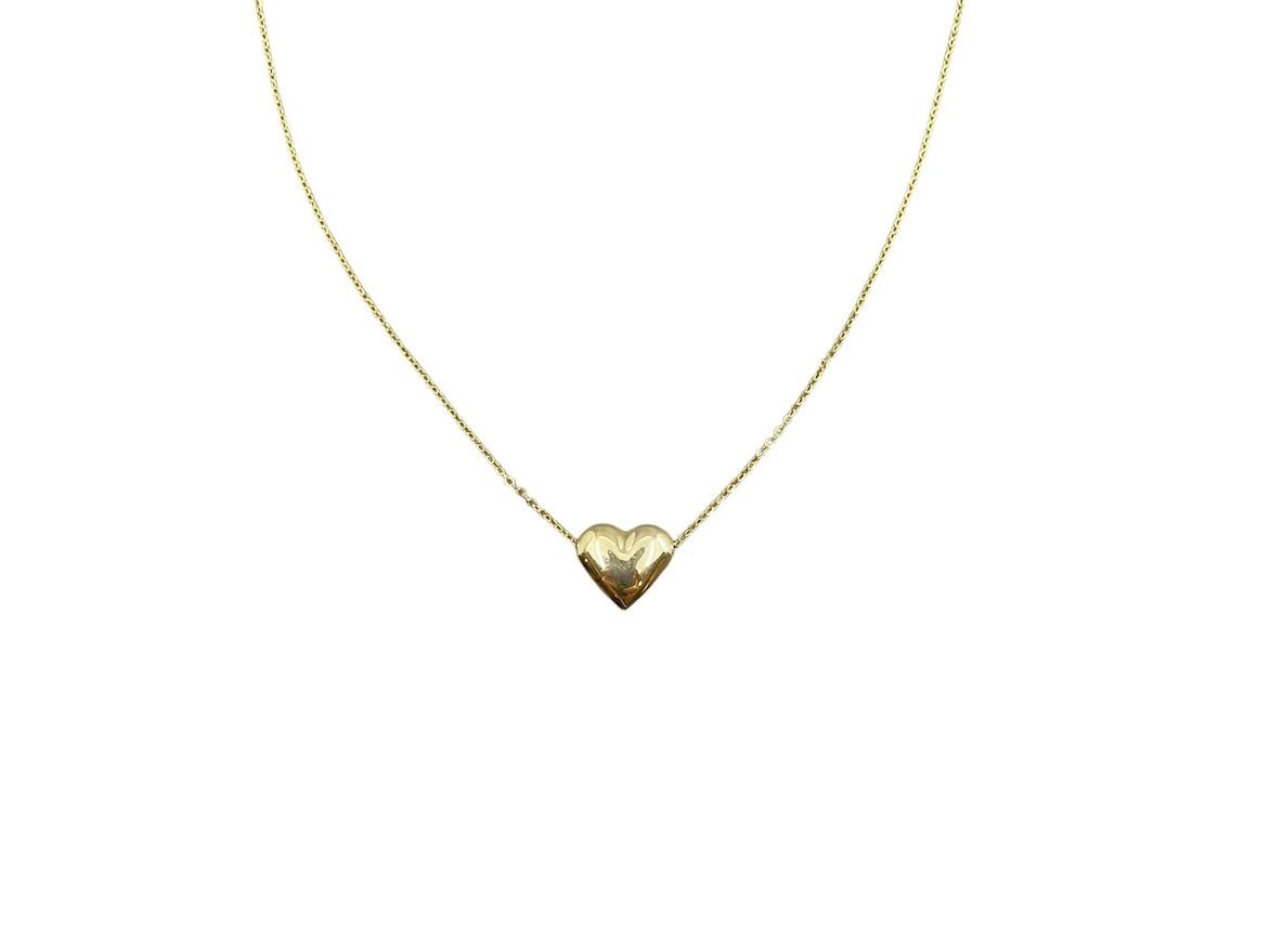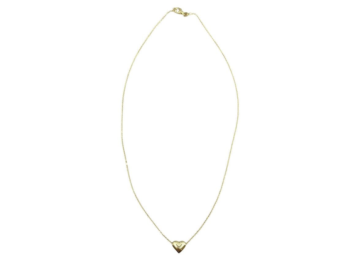 Made of 14k yellow gold, this 18-inch necklace with extender, features a puffed heart charm.