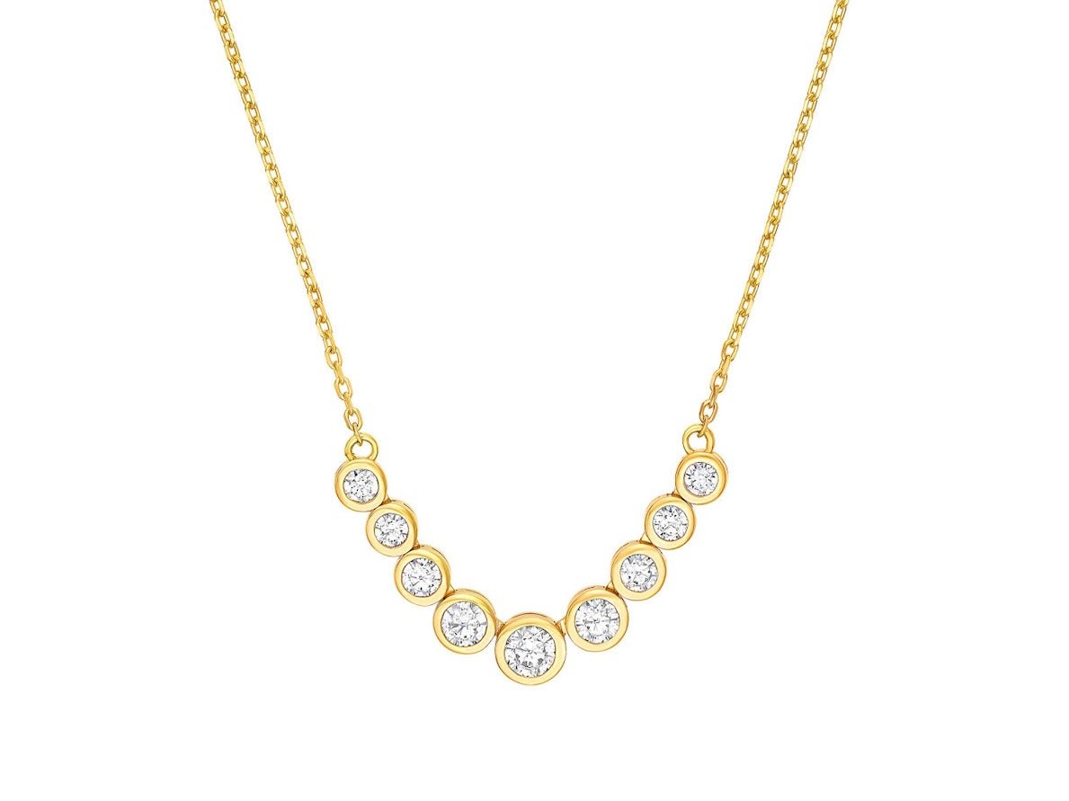 Add a touch of timeless sophistication to your collection. Featuring 1.0tcw of sparkling diamonds, this 14k yellow gold necklace is 17 inches long with a lobster lock closure. Also available in white gold.