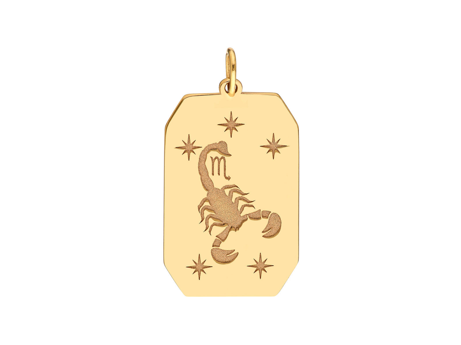Made of 14k yellow gold, this 13mm by 20mm pendant is engraved with the zodiac sign for Scorpio. Pair it with your chain of choice.