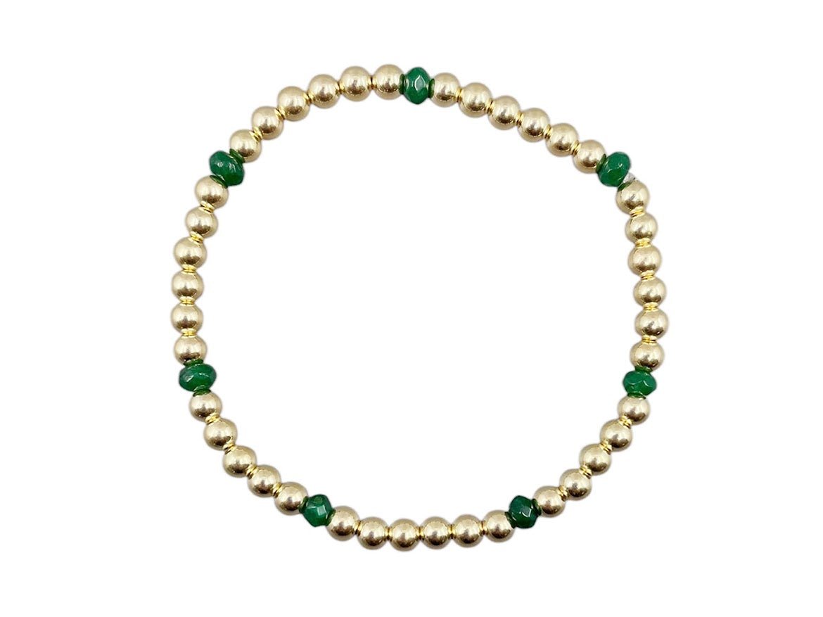 14k gold-filled beads, 4mm in diameter, are paired with 7 faceted emerald stones for a great look on its own, or stacked.