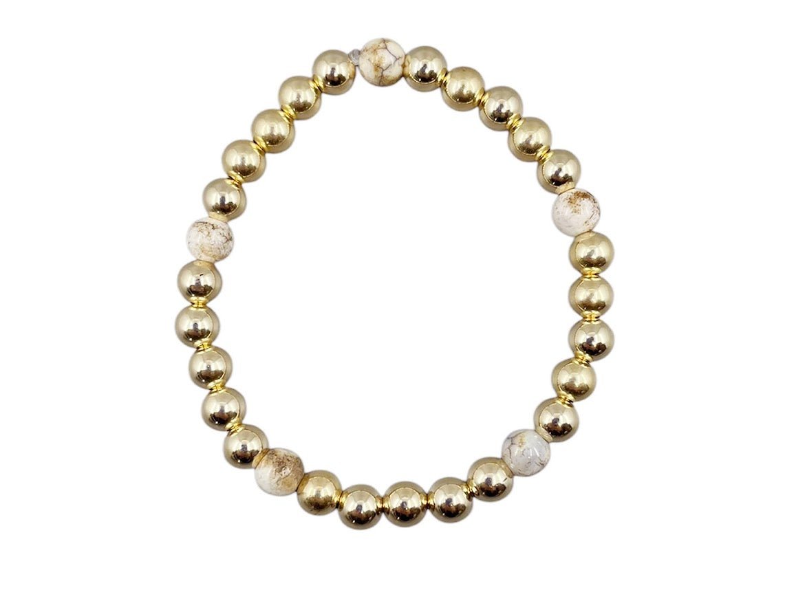 6mm Gold Bead Bracelet with 5 Brown Jasper Beads