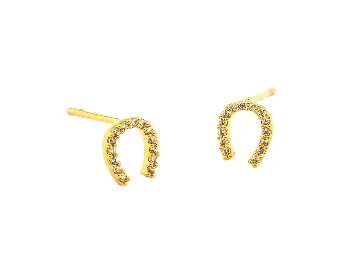 These gold-plated mini horseshoe stud earrings are detailed with pave cubic zirconia.